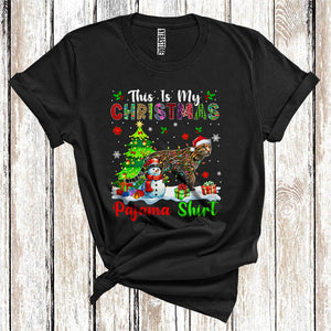 This Is My Christmas Pajamas Shirt, Snowman Xmas Tree Lights Santa Ocelot, Christmas T-Shirt
