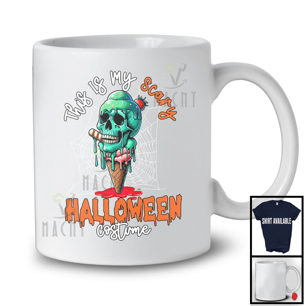 This Is My Scary Halloween Costume; Creepy Ice Cream Zombie Skull Lover; Family Group T-Shirt. This cotton t-shirt is a durable staple product with a classic fit. One of the most popular items, it has a relaxed style made for everyday and casual wear.