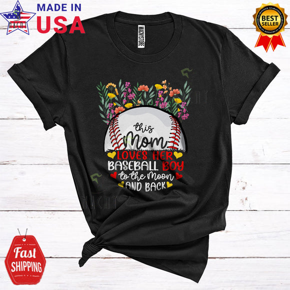 This Mom Loves Her Baseball Boy To The Moon Cute Funny Mother's Day Flowers Sport T-Shirt