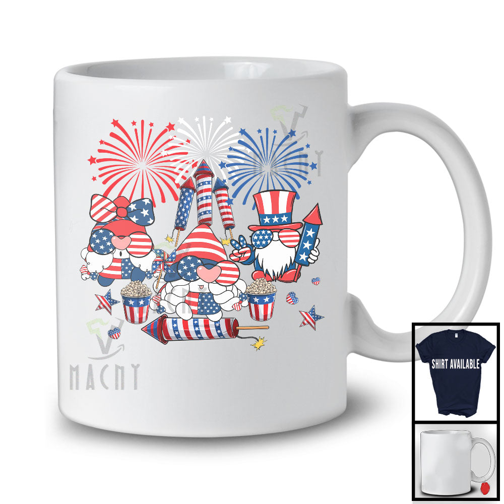 Three American Flag Gnomes Sunglasses Firecracker, Proud 4th Of July Fireworks, Patriotic T-Shirt
