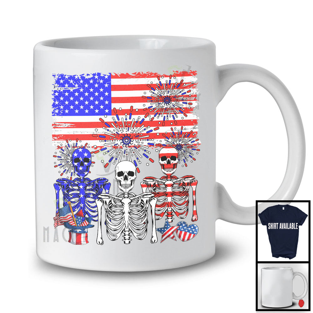 Three American Flag Skeletons, Humorous 4th Of July USA Fireworks Lover, Patriotic Group T-Shirt