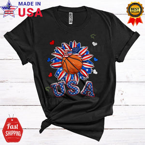 USA Cool Proud 4th Of July Basketball Wearing American Flag Headband Patriotic T-Shirt