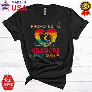 Vintage Retro Promoted To Grandpa Est 2024 Funny Pregnancy Hearts Father's Day Family T-Shirt